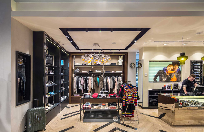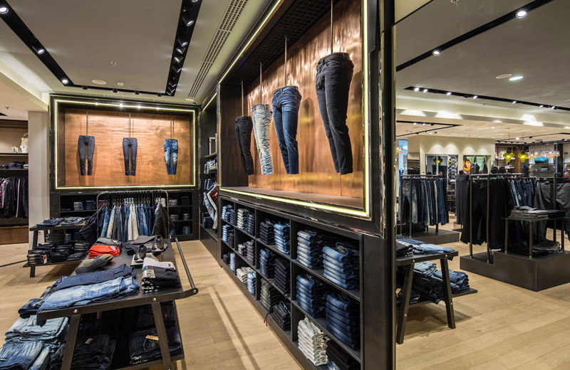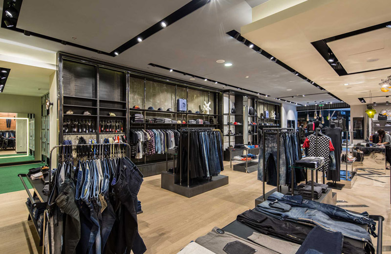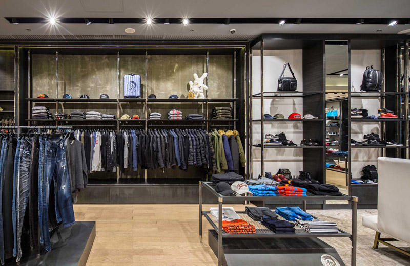 Магазин Diesel представляє італійський бренд деніма, чоловічого та жіночого одягу, взуття, аксесуарів. Це преміальний бренд, що накладає відбиток на його презентацію перед потенційними покупцями. Раніше ми вже розповідали про специфіку освітлення магазинів одягу.