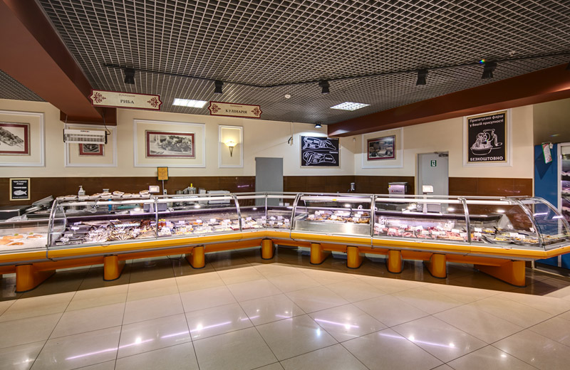 - Заморожені продукти, молочні продукти та морепродукти можуть освітлюватись джерелами світла з колірною температурою до 6000К, що підкреслює їхню свіжість. Тепле світло зробить їх непривабливими або несвіжими на вигляд