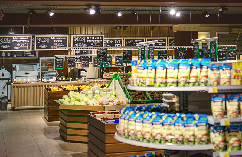 - Рівномірна освітленість по торговому залу (мінімум 200 лк) та достатній рівень загального світла (600-700 лк)