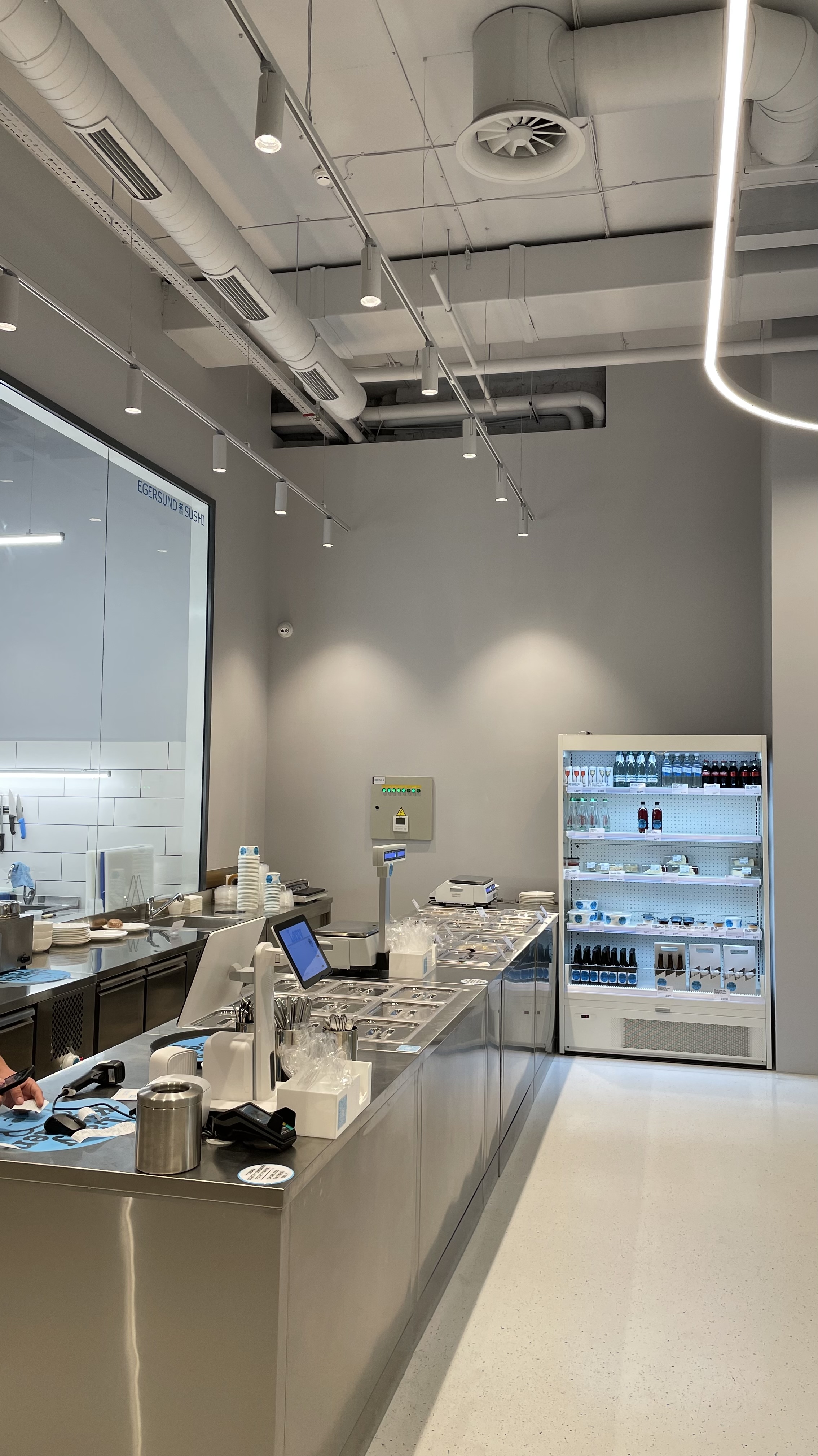 У зоні магазину — Shooter-M. Потужний, точний, з характером. Він підкреслює продукцію Lazy Kitchen так, ніби це експозиція витончених страв. Суші, салати, боули — усе на місці, усе в правильному акценті, як і має бути в продуманому освітленні для кухні комерційного формату.