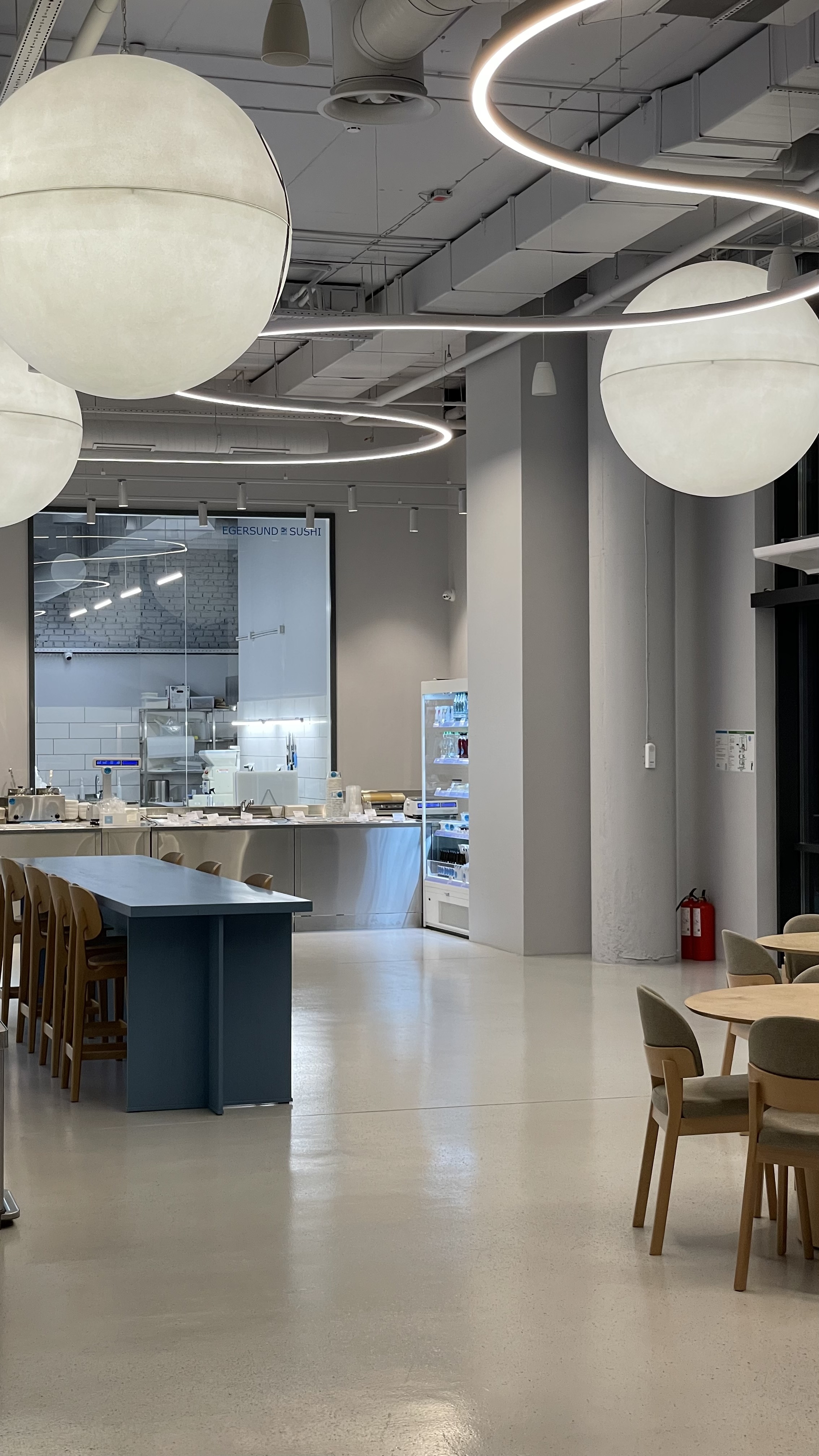 І родзинка — великі декоративні світлові кулі. Це не просто декор, а повноцінний емоційний акцент. Вони не кричать «подивись на мене» — вони м’яко нашіптують: «залишайся, візьми ще один рол, дозволь собі паузу».