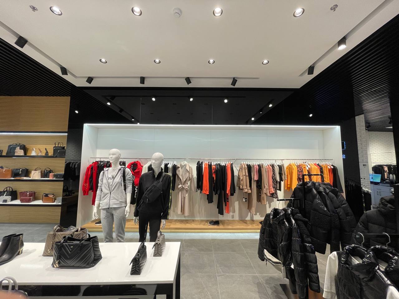 Кроме того, для выделения отдельных элементов и усиления визуального акцента были использованы прожекторы на шинопроводе Shooter-L. Их точное направление света позволило подчеркнуть некоторые детали и изделия, привлекая внимание покупателей к определенным частям магазина.