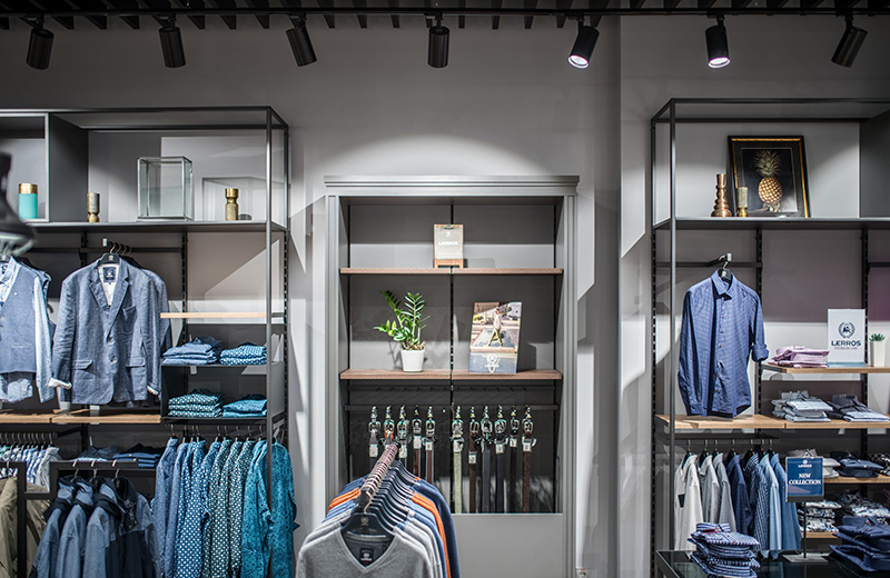 Известный, современный бренд, повседневной одежды Lerros обратились к нам за проектом освещения и установкой нашего света в новом магазине.
