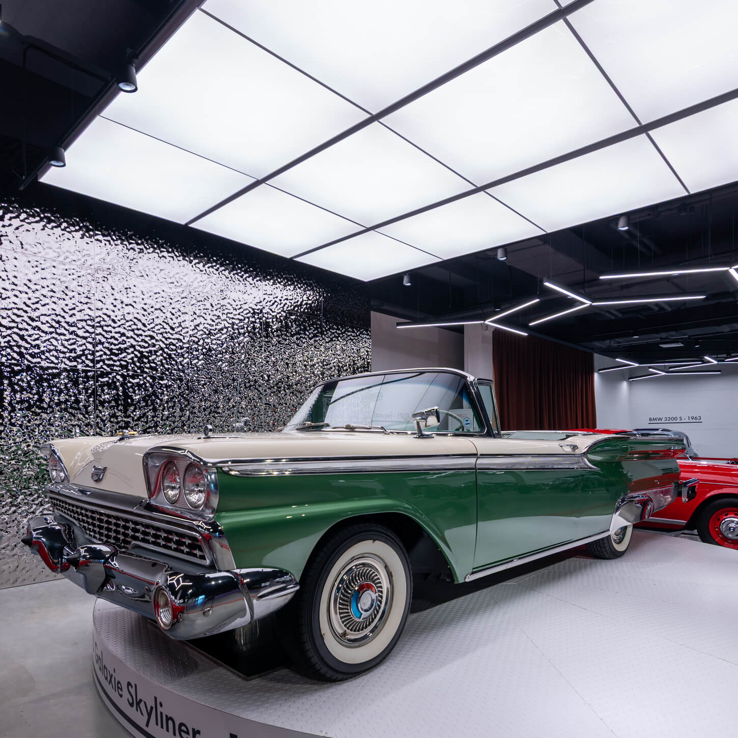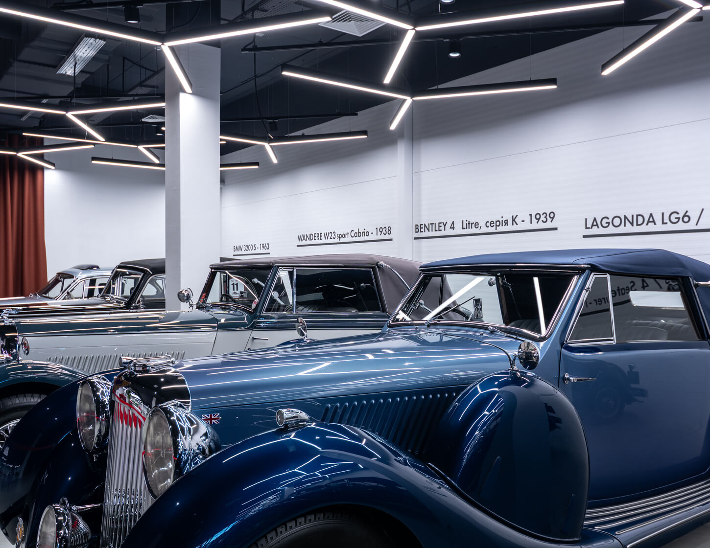 Музею ретроавто VIKCARS у Львові було потрібне світло, що не спотворює лінії авто і не дає різких тіней. Ми зібрали базу з лінійних світильників та великоформатних світлових панелей — рівне поле, на якому авто виглядають об’ємно й чисто. Це саме те, що має давати якісне освітлення для музею.
